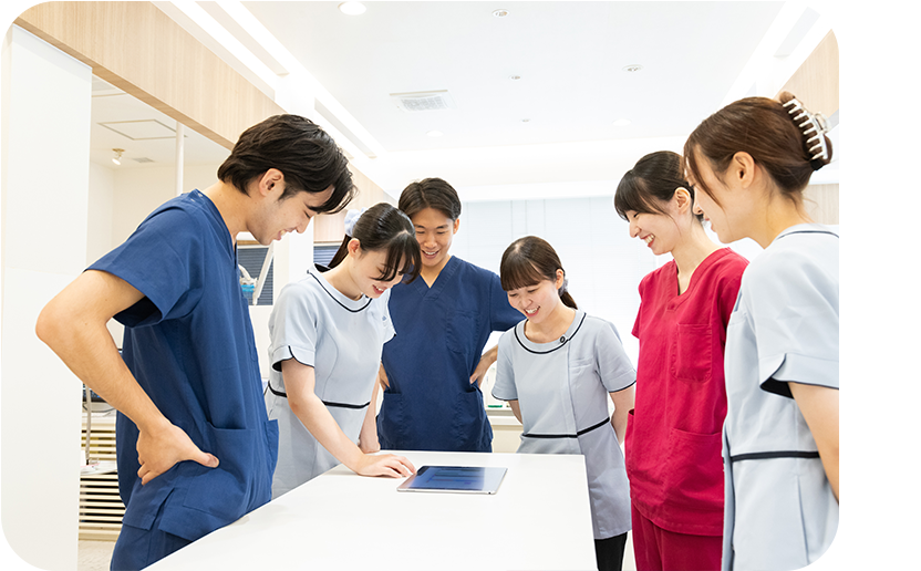 スタッフ一人ひとりが患者様のために何ができるか考え、切磋琢磨し、みんなで同じ目標に向かっていくことが「世界一安心・安全な歯科医院」の実現につながると信じています。